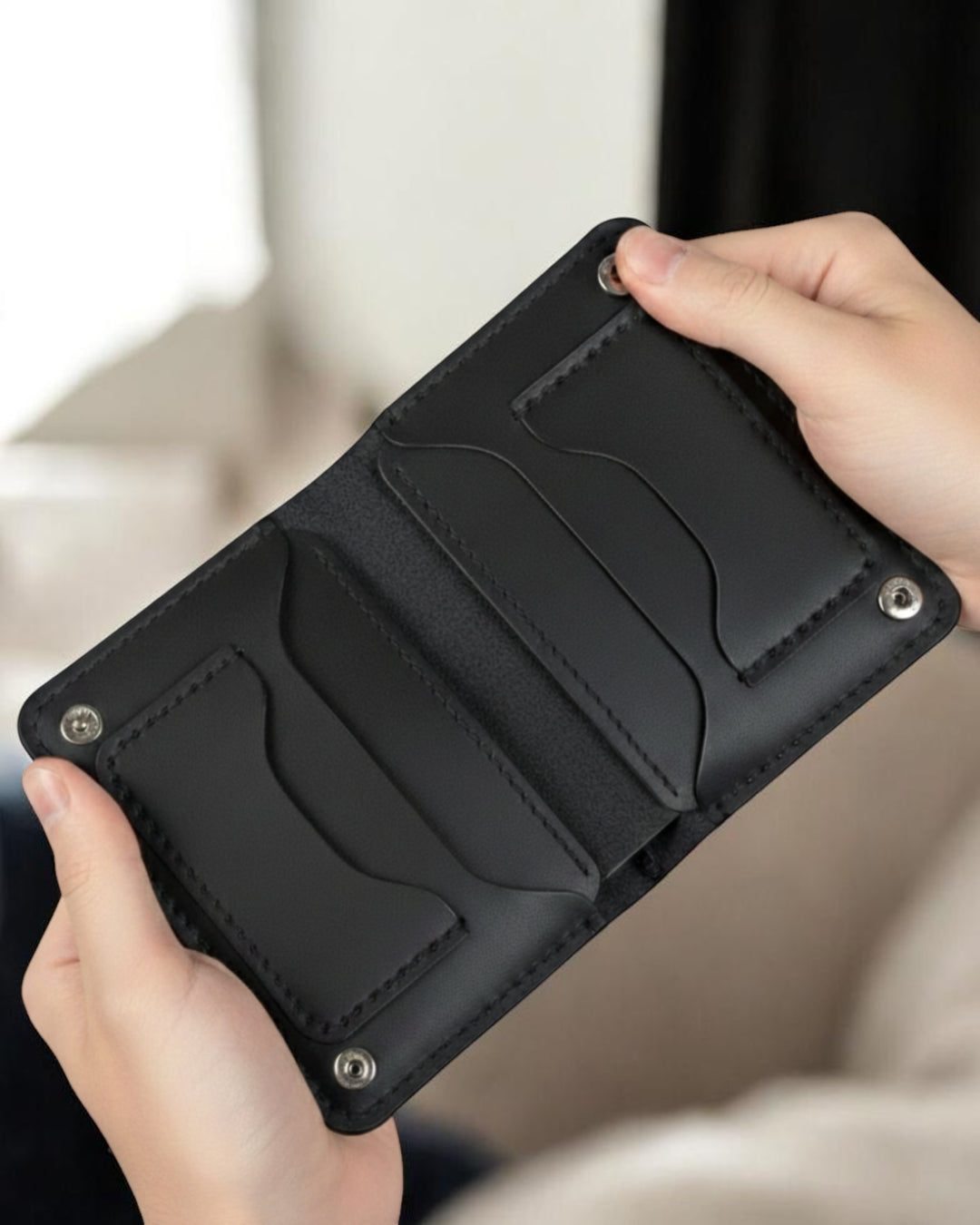 • Organisation : 6 fentes pour cartes + 2 compartiments passeport/documents + espace billets.